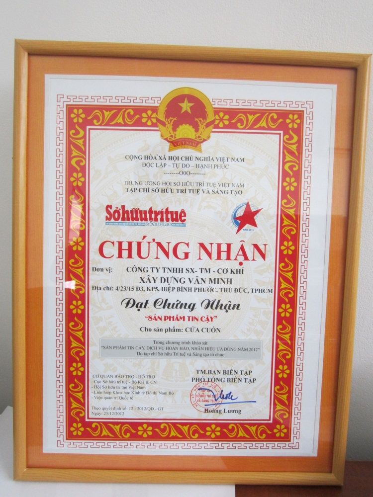 Vamidoor đạt chứng nhận "Sản phẩm tin cậy" do tạp chí Sở hữu Trí tuệ và Sáng tạo tổ chức chứng nhận, cùng sự hỗ trợ và tư vấn của các cơ quan như: Hội Sở hữu Trí tuệ Việt Nam, Liên hiệp Khoa học Kinh tế Đô thị Nam Bộ, Viện Quản trị Quốc tế....